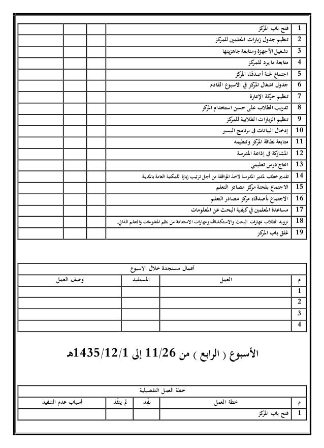 نموذج خطة الزيارات الصفية لمدير المدرسة