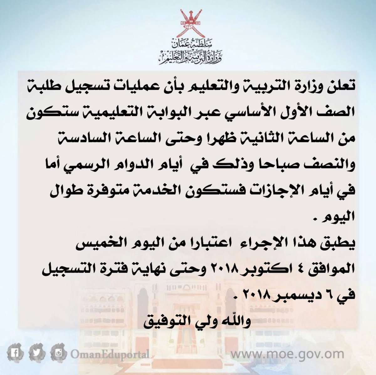 مازن ع مان On Twitter إعلان حول توقيت تسجيل طلبة الصف الأول الأساسي بالبوابة التعليمية