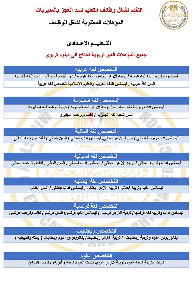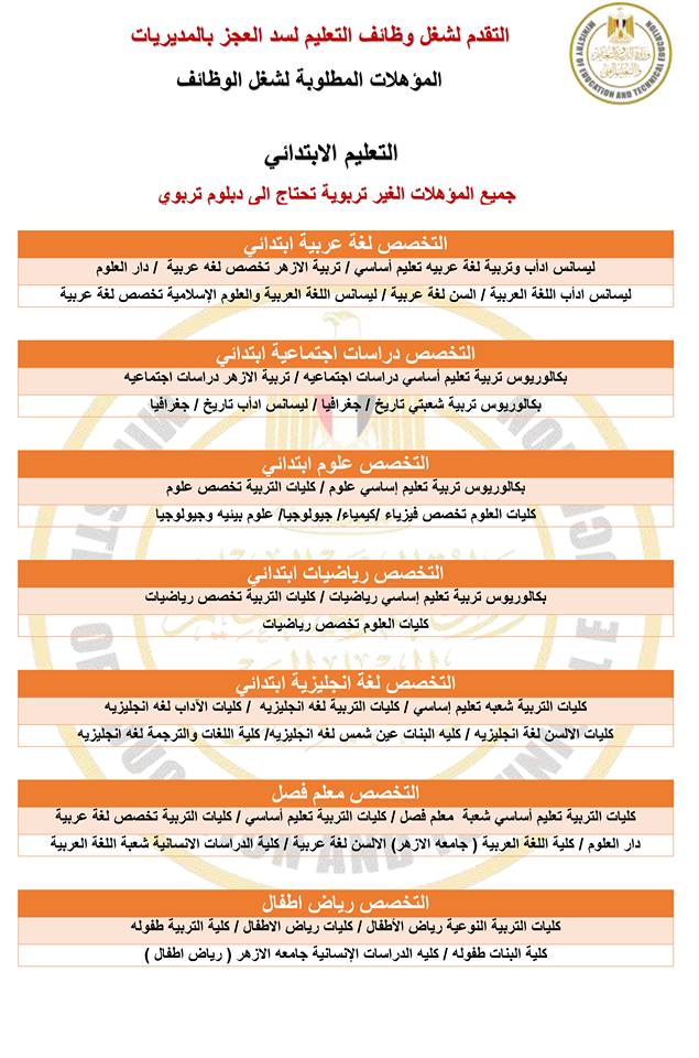 فتح التقديم بالتربية والتعليم لخريجى تربية اداب علوم أزهر تجاره حقوق دار علوم هندسة زراعة طب بيطرى خدمة اجتماعية