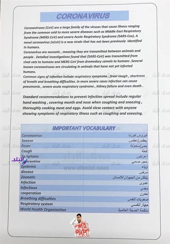 موضوع تعبير باللغة الإنجليزية عن كورونا A Paragraph About Coronavirus صقور الإبدآع