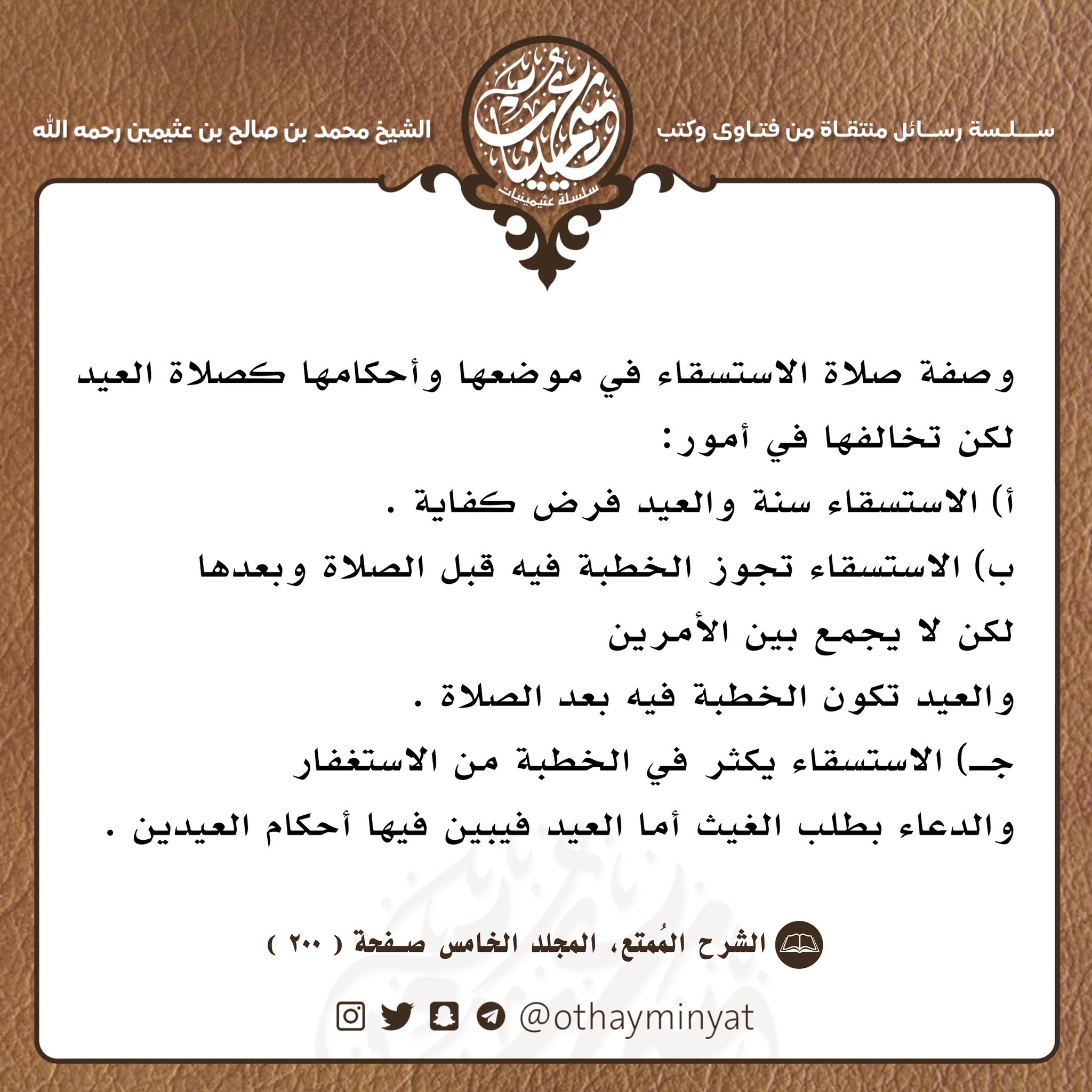 سلسلة عثيمينيات En Twitter صفة صلاة الاستسقاء وفرقها عن صفة صلاة العيد ابن عثيمين سلسلة عثيمينيات صلاة الاستسقاء استسقاء