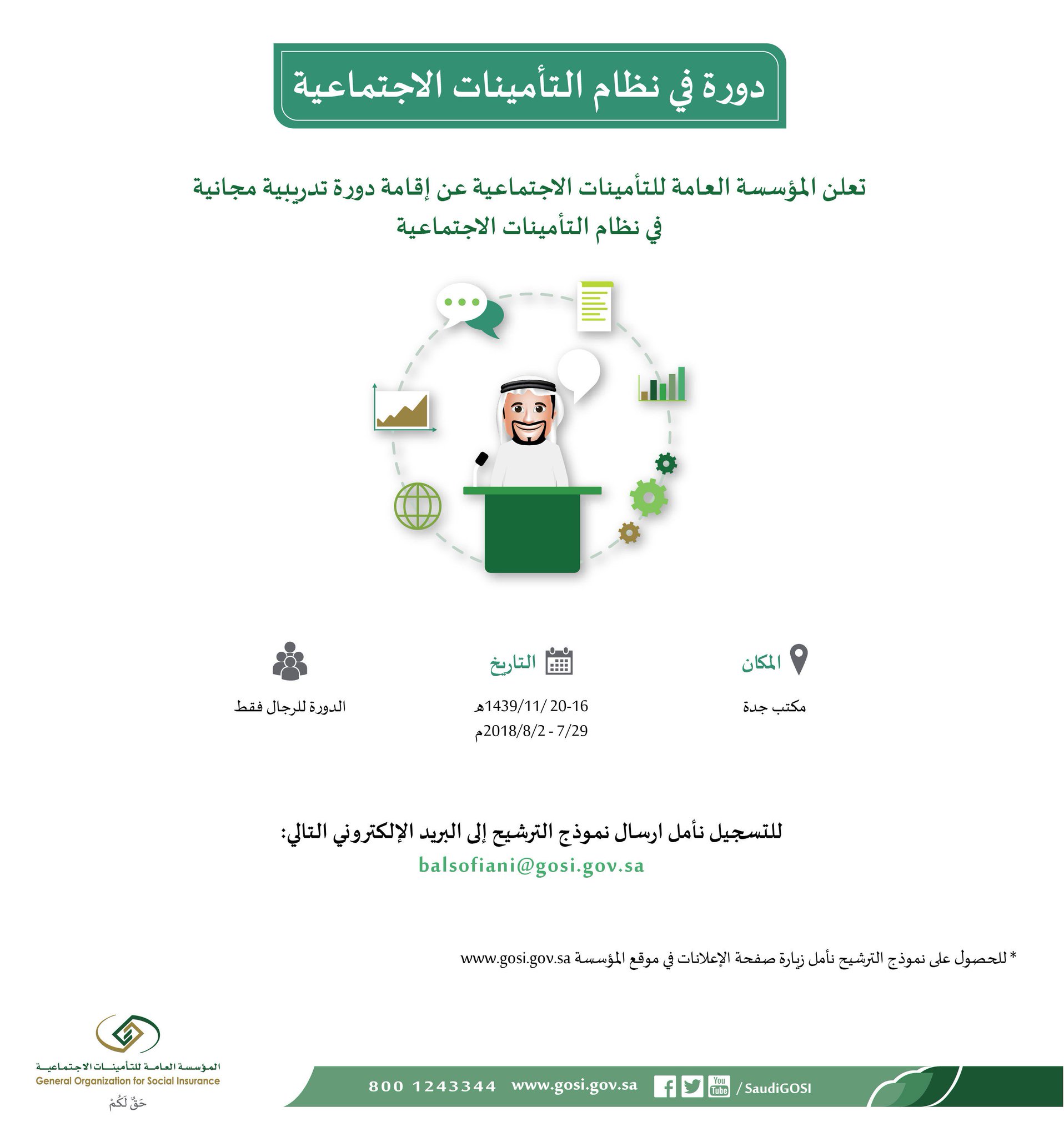 التأمينات الاجتماعية On Twitter مكتب المؤسسة بـ جدة يقيم دورة مجانية في شرح نظام التأمينات الاجتماعية مخصصة للرجال للحصول على نموذج الترشيح Https T Co Lsirrqzdpj Https T Co B8xlxjgrxe
