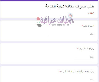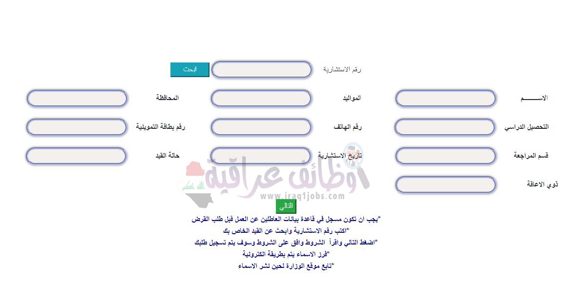 استمارة تقديم طلب فرصة عمل في وزارة العمل والشؤون الاجتماعية موقع تعيينات العراق