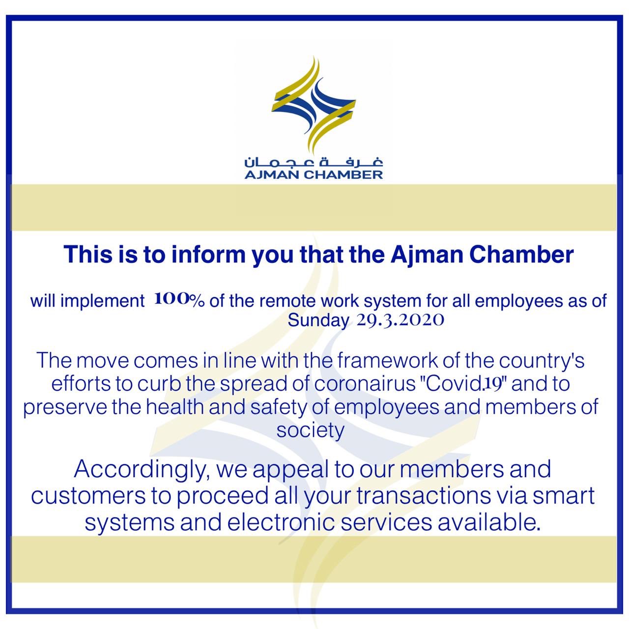 Ajman Chamber On Twitter This Is To Inform You That The Ajman Chamber Will Implement 100 Per Cent Of The Remote Work System For All Employees As Of Sunday March 29 2020