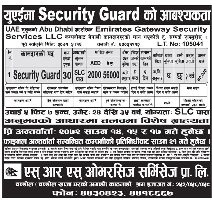Job Vacancy In Emirates Gateway Security Service Job Vacancy For Security Guard Job Demand From Uae Job Finder In Nepal Nepali Job Finder Portal Finds Your Match